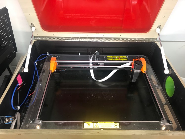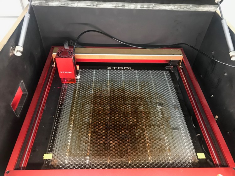 Nous utilisons la nouvelle découpeuse et graveuse laser de la compagnie Darkly Labs, d’une puissance de 60 watts.