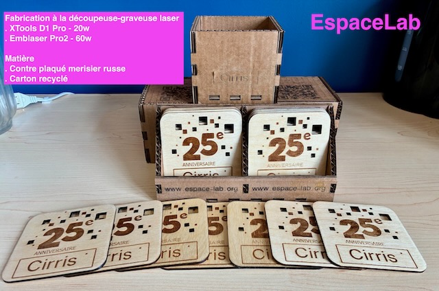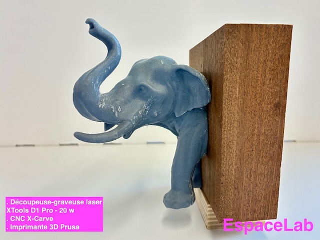 Parcourez notre sélection de photos mettant en valeur des créations fabriquées à EspaceLab. Chaque image présente un objet unique accompagné d’une description précisant les machines et outils utilisés pour sa conception : impression 3D, découpe laser, fraiseuse CNC, électronique et plus encore.